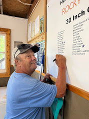 MFT results for 27 July: We had quite a tournament with some very respectable fish caught and released. Since I'm the judge, jury, and executioner I decided to award a few more prizes. In the Northern Pike/Musky award we had 3 worthy recipients. Aidan from C-7 landed and released a beautiful 35-inch Pike. Perry from Penthouse 1 landed and released a very rare silver Pike. I will post the picture when I get from them since they are out fishing as I write this. It's a genetically mutated Pike. I liken it to an albino deer. So I awarded Perry a hat as well. And rounding out the Pike/Musky awards is Penthouse 2 Ryan who boated and released a 43-Inch Musky! Jim from C-2 won the micro prize with a 5-inch bass, and Les from C-3 won the walleye with a 28-inch beauty! All released for future anglers to catch.